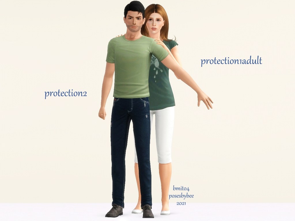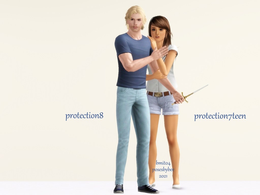 Protection poses.  One adult in front, and I’ve given you the option of a teen or adult being protected.  This set was requested by Kymber at Noble Doubt
