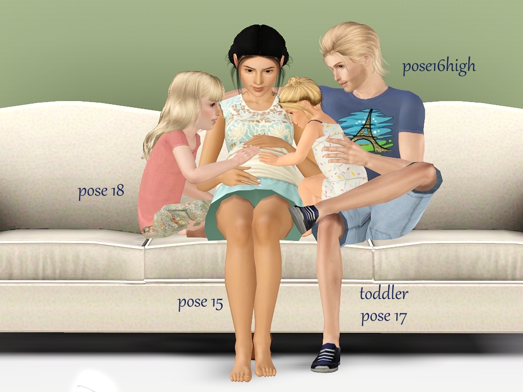 Note:  pose 16 has the adults arm on the back of the couch.  Since couch backs come in 3 heights, I’ve made a pose the arm to go on each.  16low, 16 med, 16high  Choose the pose that matches the height of the couch you chose for decorating.  It may not be perfect, as each height couch, will not be exactly the same.