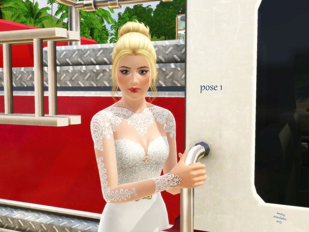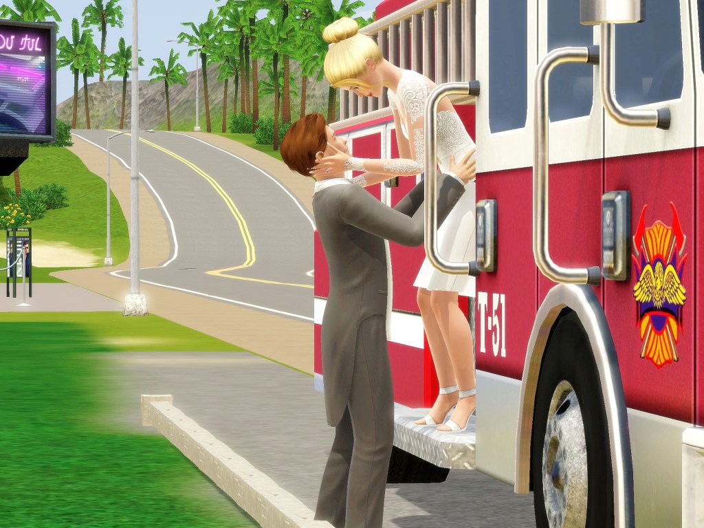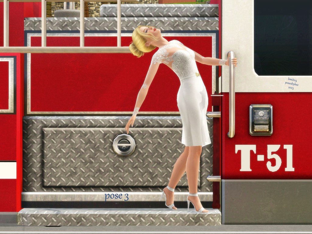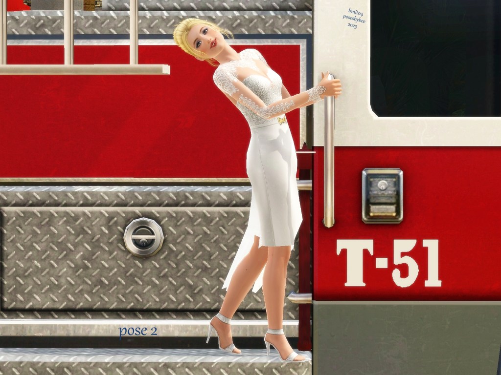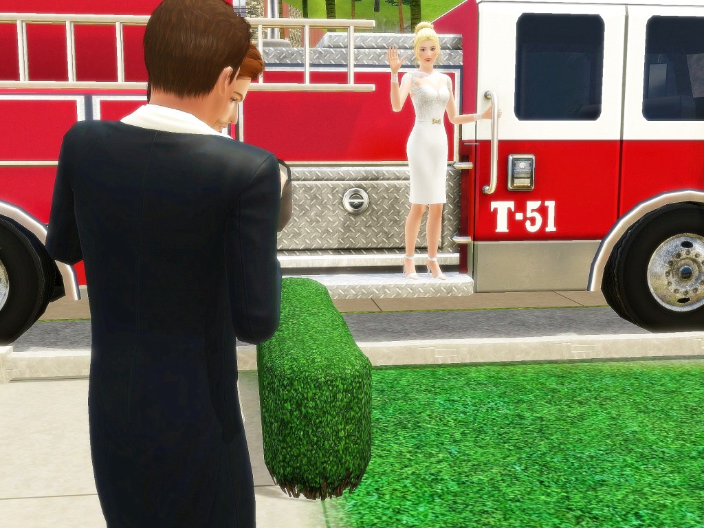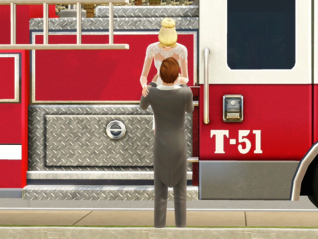 This is one of my favorite sets you did for me. Marty got left behind and had to figure out a ride to the church. LOL I had so much fun with these. I especially liked it when she was leaning back, just so obviously enjoying the ride. And then when Xalen saw her on a fire truck and lifted her down…. SIGH. These look spectacular, Bee. And I thank you with my whole heart.