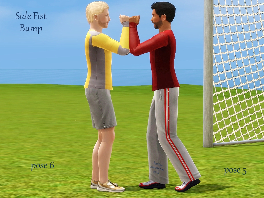 Cheer bump poses – chest bump, fist bump, hip bump