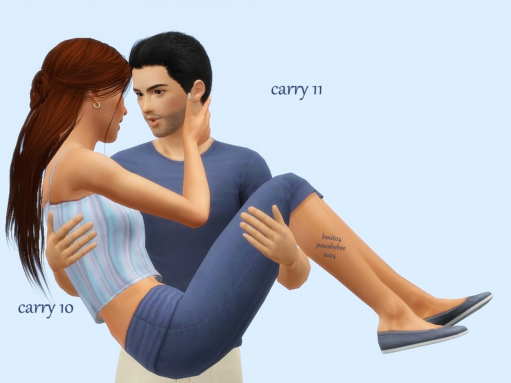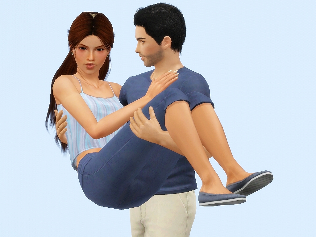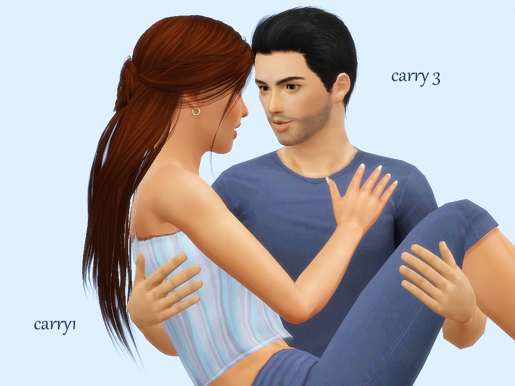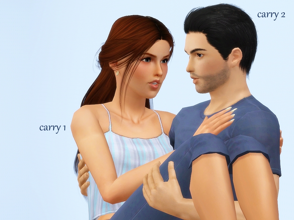Carrying poses where the two sims are having a conversation.  These poses are interchangeable, as the male is the same for every pose but with different heads/expressions or legs walking.  Romantic carry poses coming next.