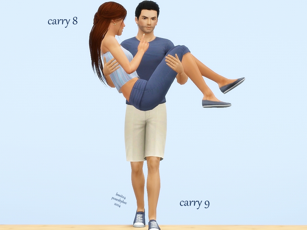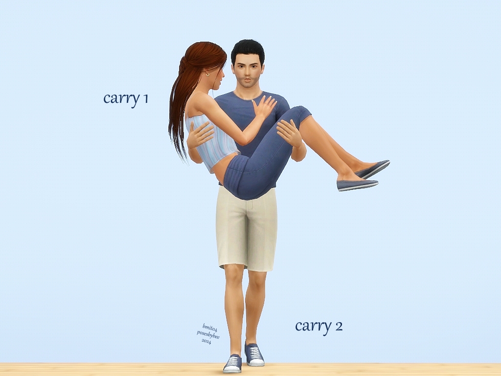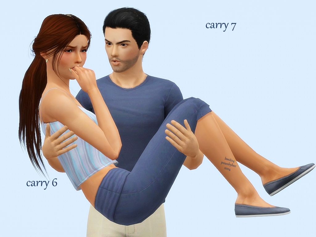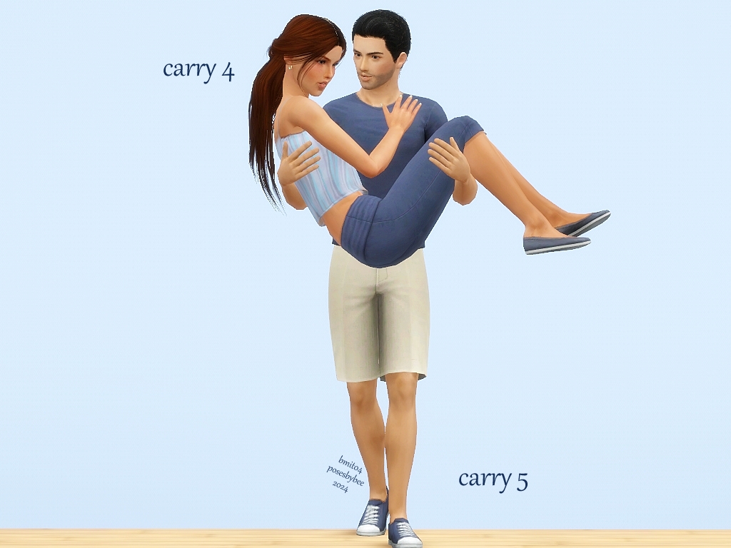 Carrying poses where the two sims are having a conversation.  These poses are interchangeable, as the male is the same for every pose but with different heads/expressions or legs walking.  Romantic carry poses coming next.