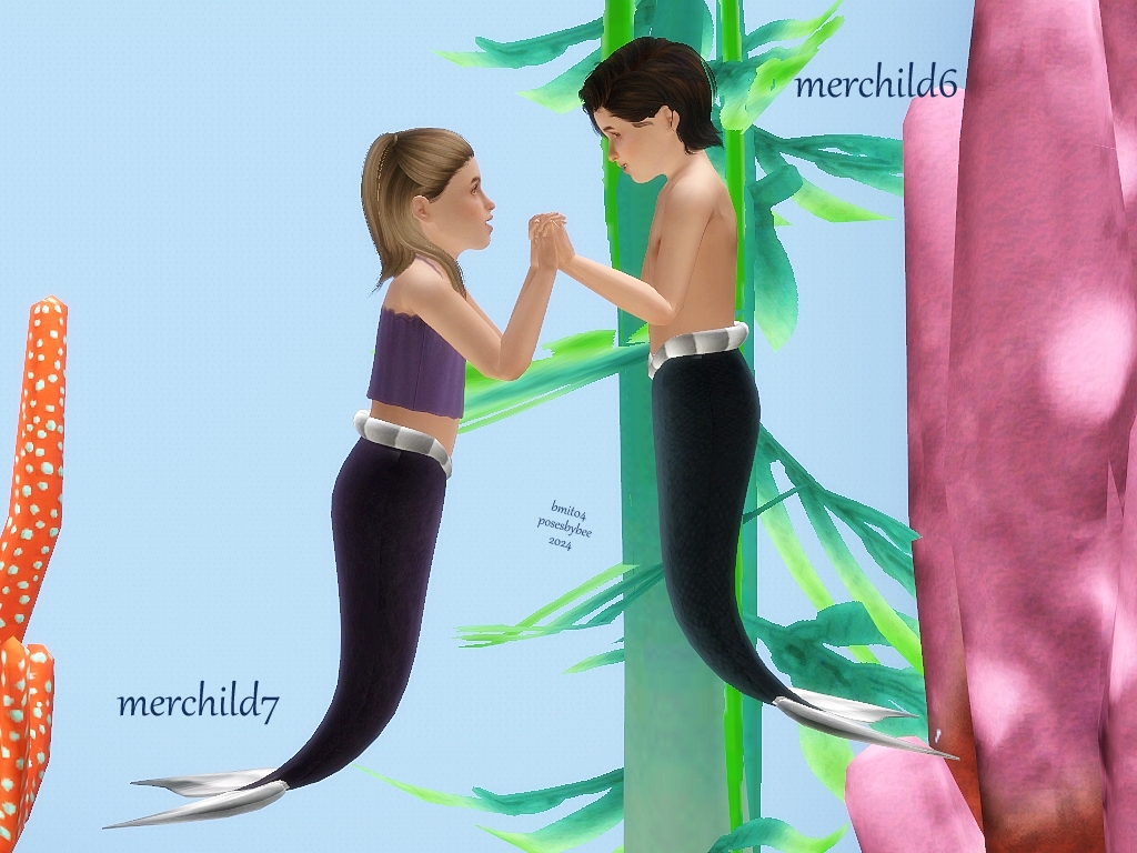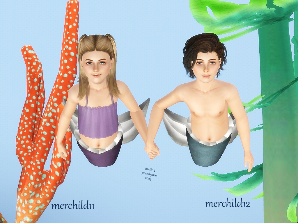 Poses for a mermaid child. I have designed the swimming poses off the floor but you will need to use OMSP to alter the height you want your sim to be.