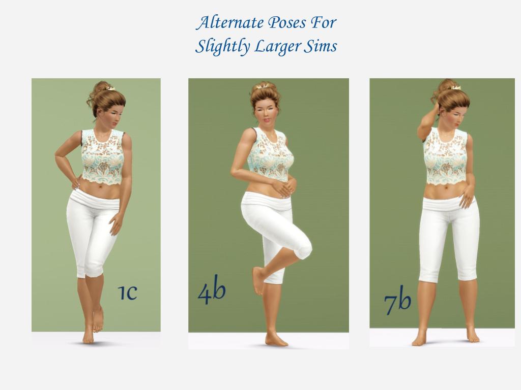That is great, I appreciate your poses because you are always very thoughtful about details. I like to have normal looking sims so having poses for larger sims opens the possibility for a more varied gameplay.