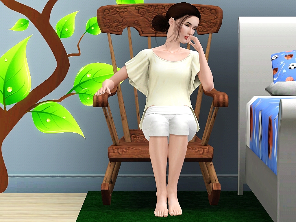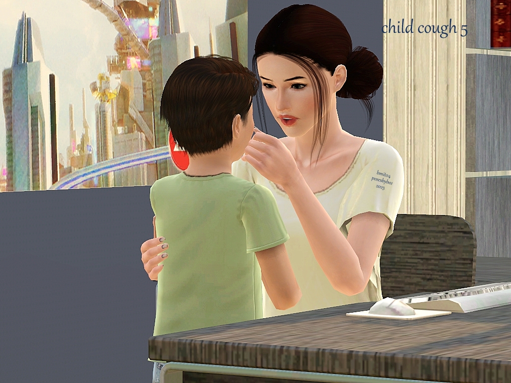 In posing 3-5 – I set the computer on OMSP so I could pull it back to make room for the arms of pose 4. In posing number 5, you can place the chair on OMSP, or pose the sim on the chair turned sideways and pull the desk close.
