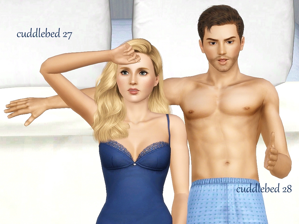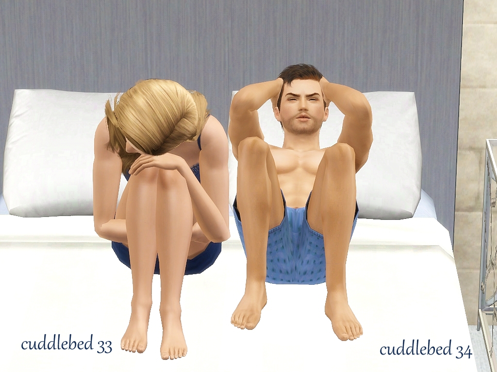 A conversation while cuddling in bed.  Includes laughter, upset and romance.  I’ve kept the hands loose in case players want to use these poses with sims in clothes.  I have fixed the hand on hip for pose 17 and 19, so it doesn’t go into the clothes.  I did include some poses of slight anger or upset, as requested.  Some poses could be intermixed.  These poses will not work well with two male sims, although I did not try.