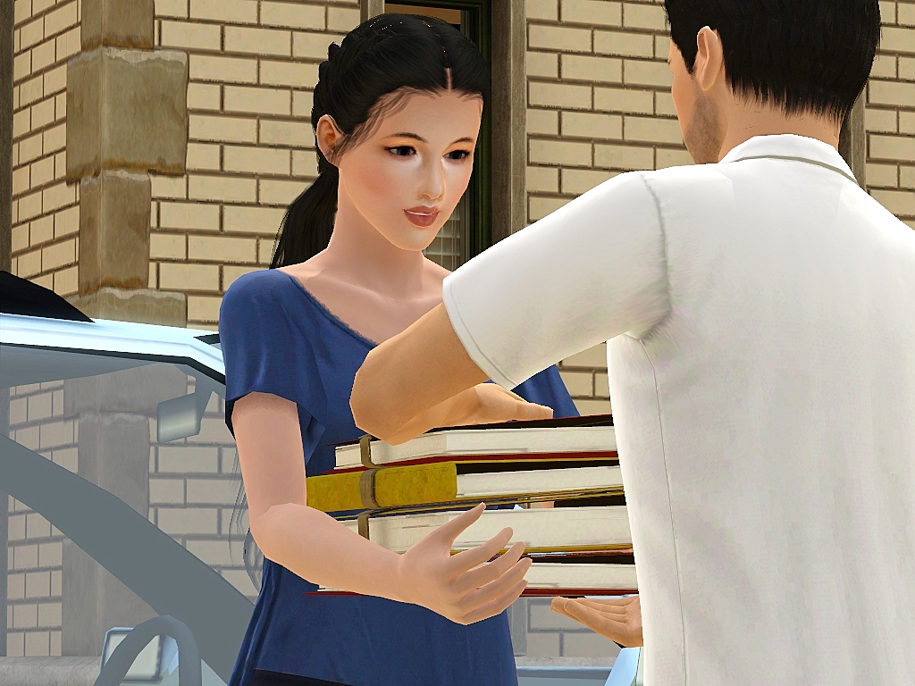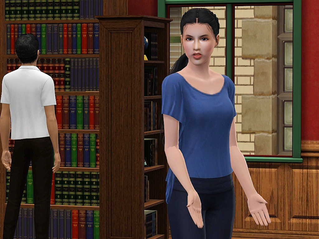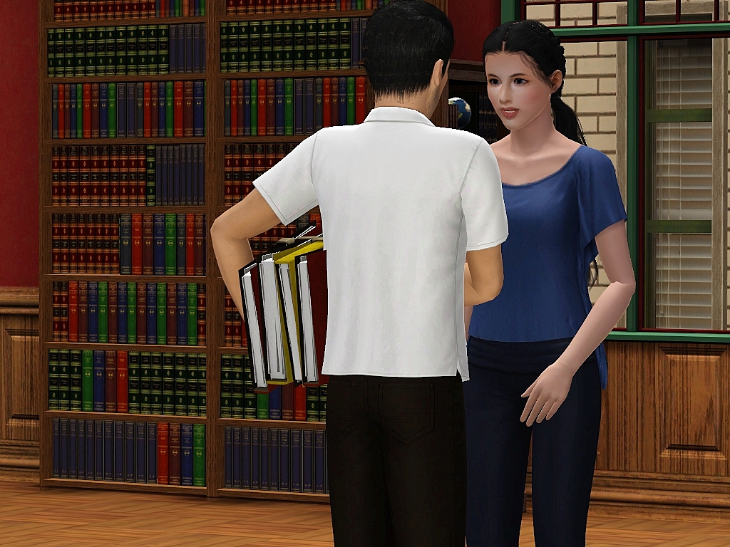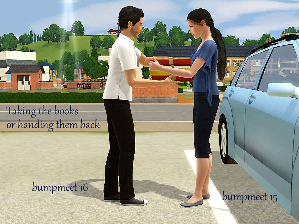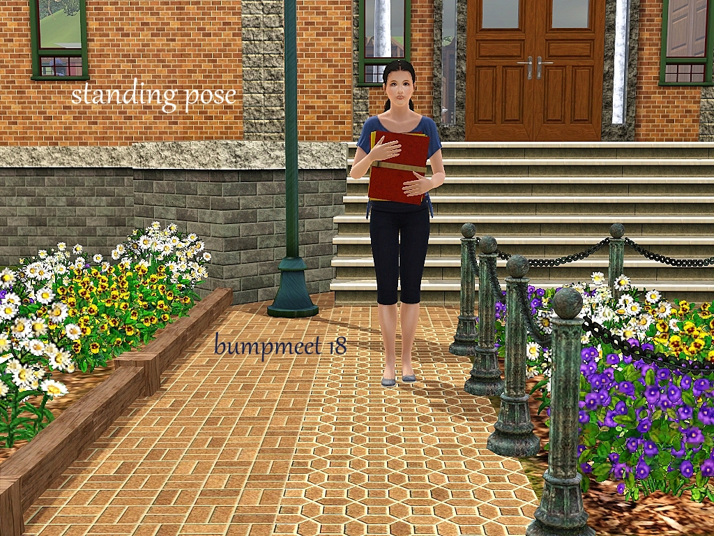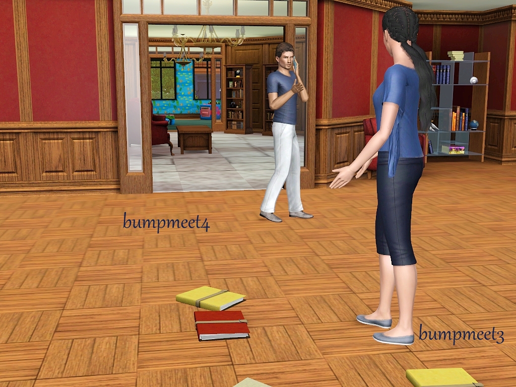 One of my followers mentioned that meeting in a library, office or university would be a good idea.  This thought was the first thing that came to mind and when I went looking for CC I found these books at #ATS3.  Both in a pile and individual books.  With that discovery I was super excited to make it! Thank you Sandy!! I did sneak a pose on the end of the sim who bumped coming back to help pick up the books.  Mix some of these poses up more than I have shown.  Please be advised, lining up this CC with the pose will be a challenge.